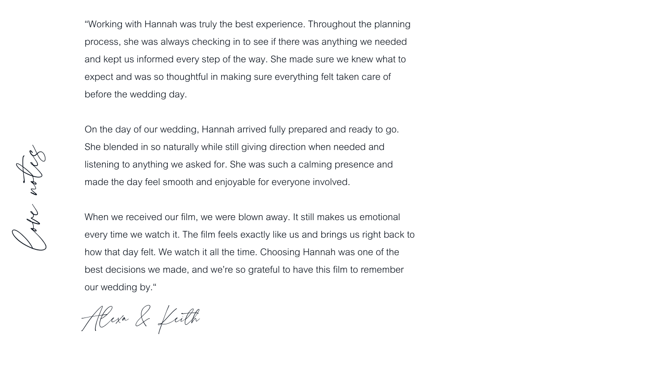 I film with a blend of editorial and documentary. Clean compositions, natural emotion, and storytelling that feels effortless and true to you.